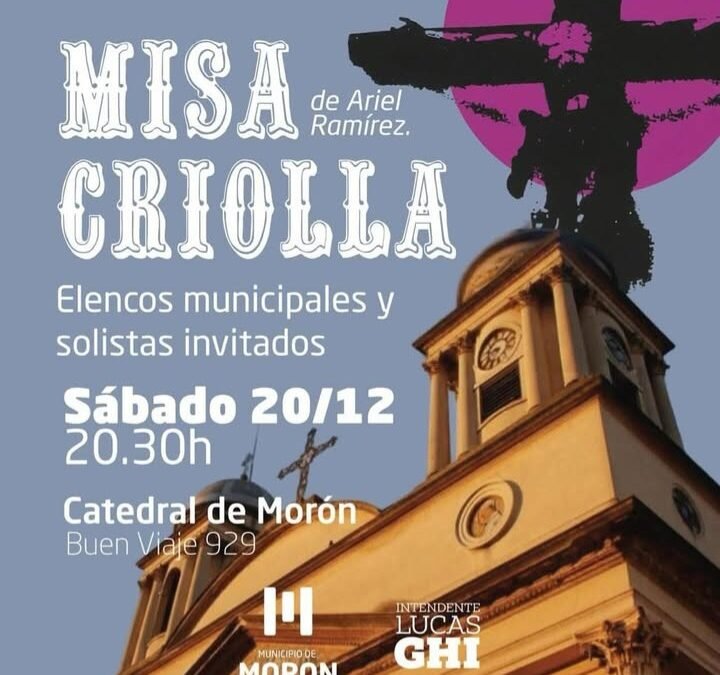 Este sábado 20 de diciembre los vecinos del Oeste tienen una nueva oportunidad de disfrutar de un espectáculo de magnitud, único y gratuito. Se trata de la Misa Criolla en el interior de la Basílica Catedral de Morón, obra cumbre de la música argentina creada por el compositor y folclorista Ariel Ramírez. Esta presentación contará con el estreno de un concierto para charango del compositor y guitarrista Guillermo Espel, a cargo del solista Rolando Goldman, músico, creador y director de la Orquesta Argentina de Charangos. Participaran la Agrupación Sinfónica Morón con la dirección musical de Pablo Bocchimuzzi , Coro de Mujeres de Morón a cargo de Roxana Muñoz; el Coro de Cámara de Morón, dirigido por Guillermo Tesone y el Coro de Jóvenes, al frente de Rocío Ferreyra, además habrá tenores De la.invitados.