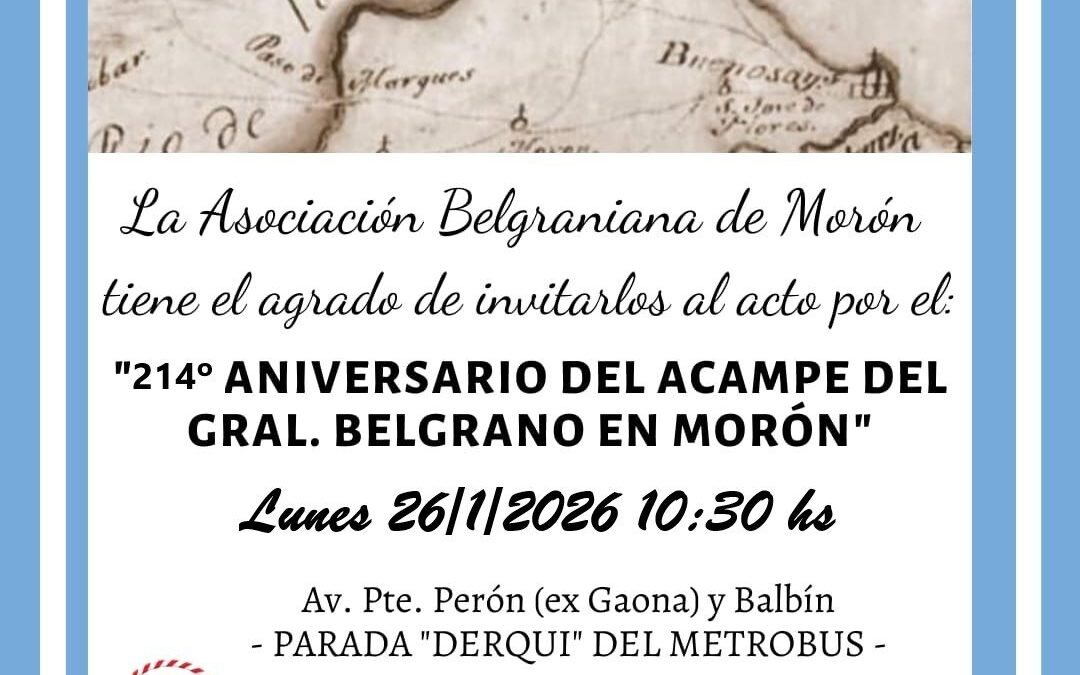 La Asociación Belgraniana de Morón mañana 26 de enero a las 10.30 hs. hará un acto en recuerdo a ese inolvidable hecho histórico en la Parada » Derqui » del Metrobus . ABM es una filial del Instituto Nacional Belgraniano , fundada en 1996 para estudiar y difundir la vida, obra y legado del General Manuel Belgrano en la zona .