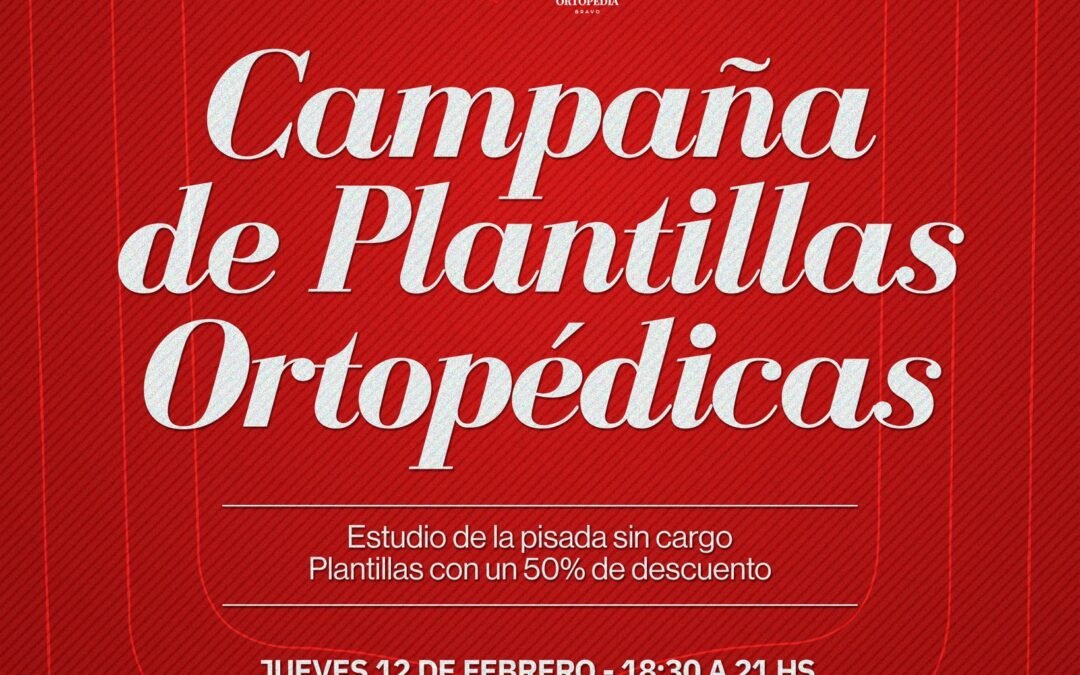 El jueves 12 de febrero se llevará a cabo una campaña de plantillas ortopédicas a 50% de descuento, que incluirá el estudio de la pisada sin cargo de 18:30 a 21 hs. en el  Club Deportivo Morón ubicado en  Hipólito Yrigoyen 1770 de Morón.                                                                                                                                                                                                                                          Se aceptan todos los medios de pago, anotándose previamente a la lista enviando un mensaje al 11-4167-3721