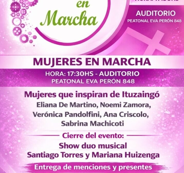 El jueves 19 de marzo en el Mes de la Mujer se presentará «Mujeres en Marcha » un espacio para conocer el trabajo de mujeres inspiradoras de Ituzaingó. El encuentro será en el Auditorio ubicado en Peatonal Eva Perón 858 de dicha localidad, coordinado y moderado por Sandra Rey la Secretaría de Innovaciòn, Tecnología, Transparencia y Asuntos Estratégicos de la Municipalidad de Ituzaingó.